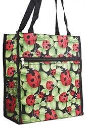Looking for the perfect multi-purpose tote bag? Look no more! Made out of a strong microfiber material, this multi-purpose bag can handle whatever you throw in it. This lightweight versatile tote is an ideal and fashionable choice for a reusable grocery bag, school bag, or beach bag to throw over your shoulder and go! Exterior velcro, zipper, and mesh pockets make for easy and accessible organization and a durable nylon lining makes for easy cleanup of accidental spills. Features a zip top as well as a Velcro closure for extra security. In a fun ladybug print, this perfect shopping bag is sure to get you noticed and comes with a matching coin purse too!